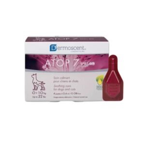 Dermoscent Atop 7 spot-on é o primeiro spot-on de origem 100% natural que acalma o prurido e hidrata, protege e repara a barreira cutânea, sendo o coadjuvante ideal no tratamento de peles atópicas, irritadas ou com alergias.