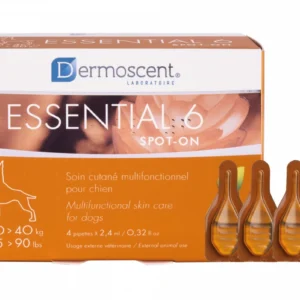 Restaura e optimiza a hidratação da pele, reforçando a sua função de barreira. Efeito desodorizante, anti-descamação, redução da perda de pêlo e anti-oxidante. A sua utilização substitui a toma diária de ácidos gordos essenciais (ómega 6 e ómega 3).